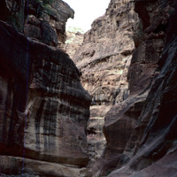 Jordan. Petra, in Siq, Nabataean pavement and water channels in walls