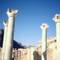 Jordan. Petra, columns of Blue Chapel, looking west