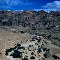 Jordan. Petra, view of Royal Tombs and Colonnaded street