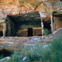 Jordan. Petra, house cut into the cliffs across from Roman theater