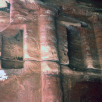 Jordan. Petra, Wadi Farasa. Inside Triniclium, opposite Roman soldier tomb