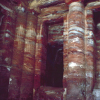 Jordan. Petra, Wadi Farasa. Inside Triniclium, opposite Roman soldier tomb