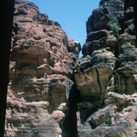 Jordan. Petra, looking back at Siq from Khaznet Far'oun (Treasury)