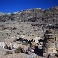 Jordan. Petra, fallen column of Great Temple