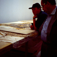 Jordan. Madaba, HRH Prince Ra'ad bin Zeid (b.18 Feb. 1936) viewing the work of Madaba Mosaic School