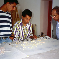 Jordan. Madaba, HRH Prince Ra'ad bin Zeid (b.18 Feb. 1936) viewing the work of Madaba Mosaic School