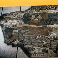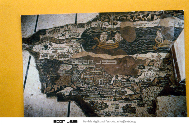 Jordan. Madaba. Picture taken of photographic print, St. George's Church, the Madaba Mosaic Map