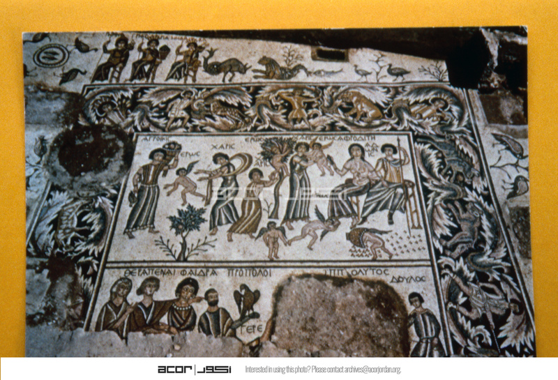 Jordan. Madaba. Picture taken of photographic print, mosaic floor of Hippolytus Hall