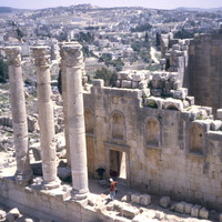 Jordan. Jerash, Temple of Zeus (Jupiter) from top of South Theater