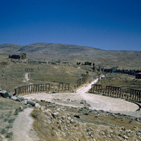 Jordan. Jerash, Forum and Colonnaded street (Cardo maximus)