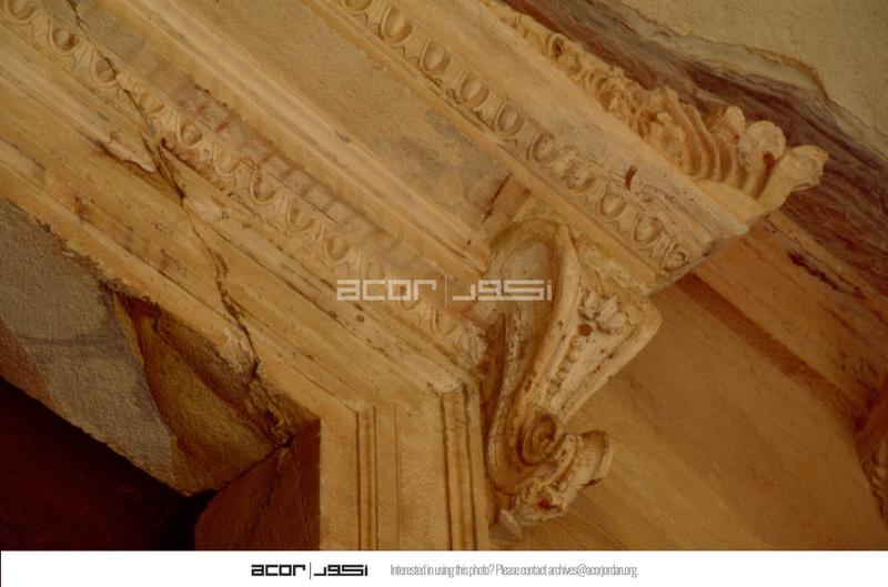 Jordan. Petra, Khaznet Far'oun (Treasury), corner of central doorway of vestibule