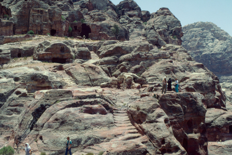 Jordan. Petra, Outer Siq, Nabatean tombs back of the Theater