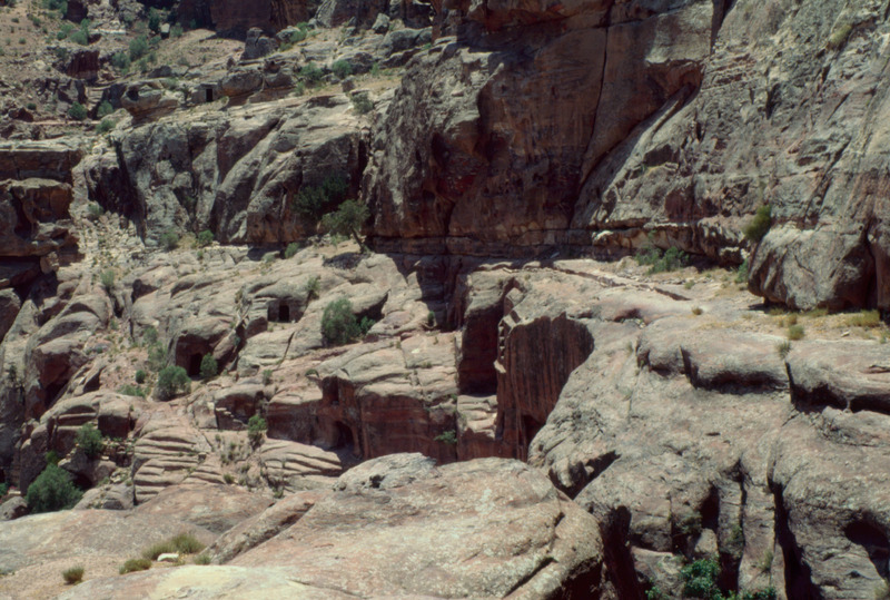 Jordan. Petra, Outer Siq, Nabatean tombs back of the Theater