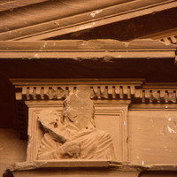 Jordan. Petra, interior of a chamber no. 468, busts of figure holding a torch carved near the outside corners and a small pediment with acroteria