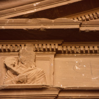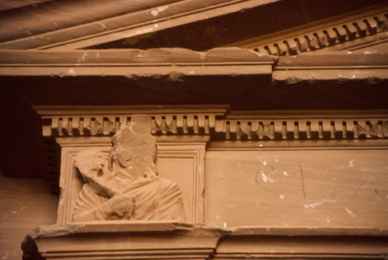 Jordan. Petra, interior of a chamber no. 468, busts of figure holding a torch carved near the outside corners and a small pediment with acroteria