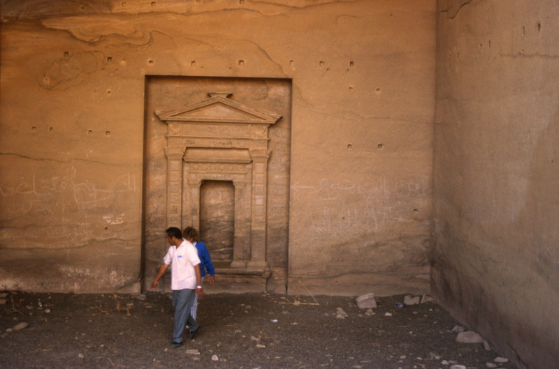Jordan. Petra, interior of a chamber no. 468, excavated out of the rock, eastern slope of the Jebel ad-Deir. A niche fitted into the back wall of an otherwise unadorned room has a rich entablature with a doric frieze