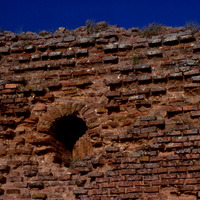Jordan. Qasr al-Mushatta, view of the brick wall