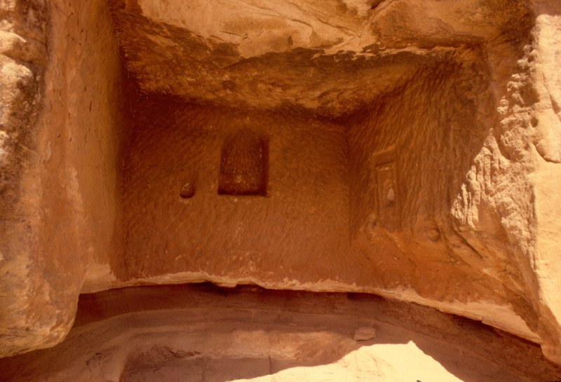 Jordan. Petra, al-Madras, niche (above), rock-cut reservoir (below)