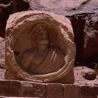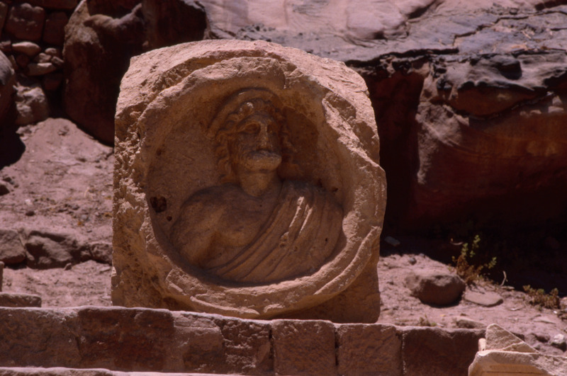 Jordan. Petra, relief representing the bust of a god, Zeus or Dionysos, but probably also identifiable as Dushara, the chief god of the Nabataeans