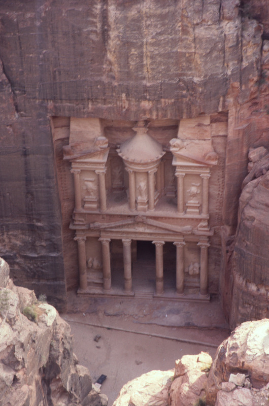 Jordan. Petra, Khaznet Far'oun (Treasury), aerial