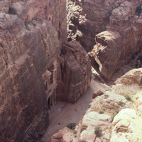 Jordan. Petra, Khaznet Far'oun (Treasury), aerial