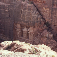 Jordan. Petra, Khaznet Far'oun (Treasury), aerial