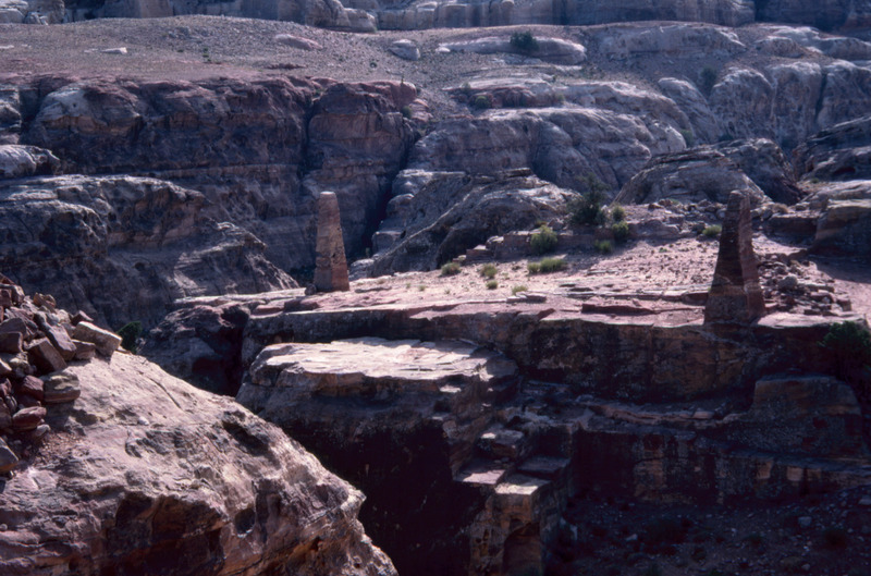Jordan. Petra, Jabal Madhbah and obelisks near High Place of Sacrifice