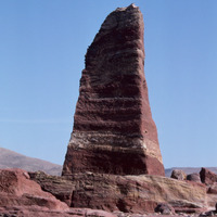 Jordan. Petra, one of the two obelisks near the High Place
