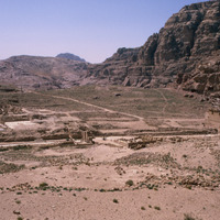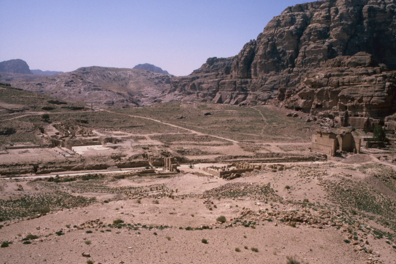 Jordan. Petra, general view of Tenemos Gate, Great Temple and Qasr al-Bint