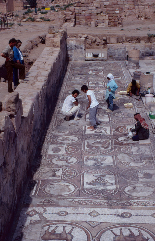 Jordan. Petra, The Petra Church, general view of the mosaic floor from the south aisle