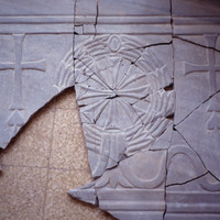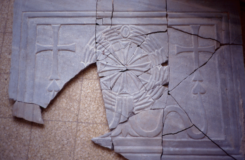 Jordan. Petra, The Petra Church, one of the marble channel screen panels with cross decoration