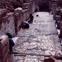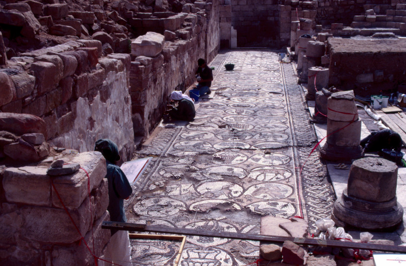 Jordan. Petra, The Petra Church, general view of the mosaic floor from the north aisle