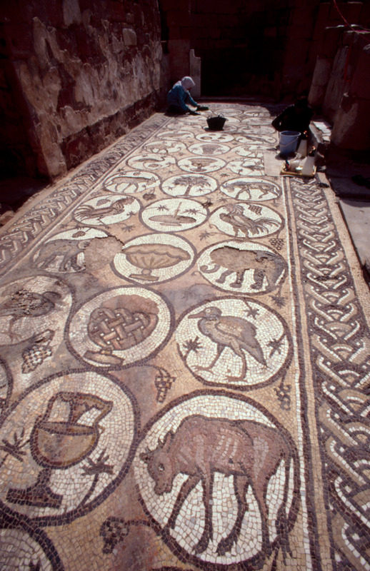 Jordan. Petra, The Petra Church, general view of the mosaic floor from the north aisle