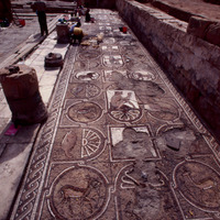 Jordan. Petra, The Petra Church, general view of the mosaic floor from the south aisle