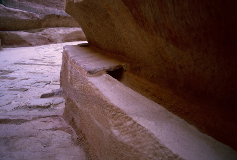 Jordan. Petra, Siq, water pipe carved into the rock with covers