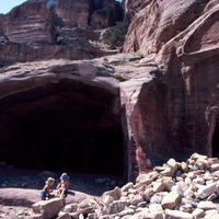 Jordan. Petra, A group of two arch-topped tombs below Umm al-Biyara