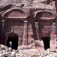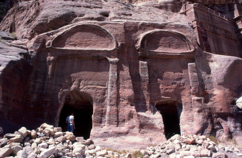 Jordan. Petra, A group of two arch-topped tombs below Umm al-Biyara