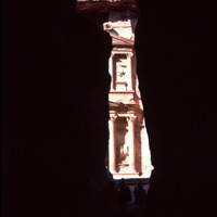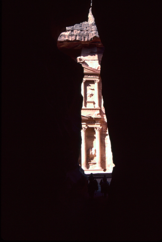 Jordan. Petra, Khaznet Far'oun (Treasury) from Siq