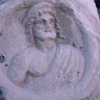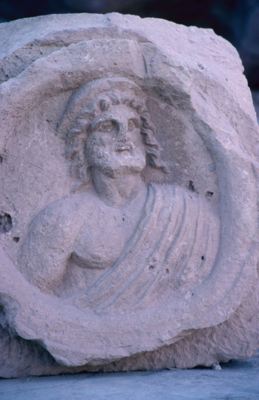Jordan. Petra, relief representing the bust of a god, Zeus or Dionysos, but probably also identifiable as Dushara, the chief god of the Nabataeans