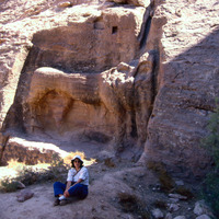 Jordan. Petra, lion fountain in Wadi Farasa