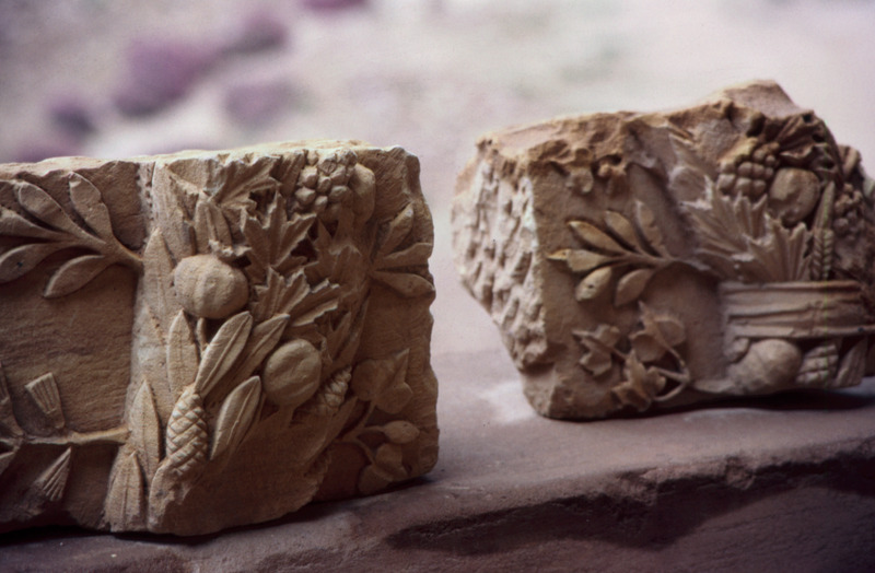 Jordan. Petra, fragments of a frieze with festoons and garlands