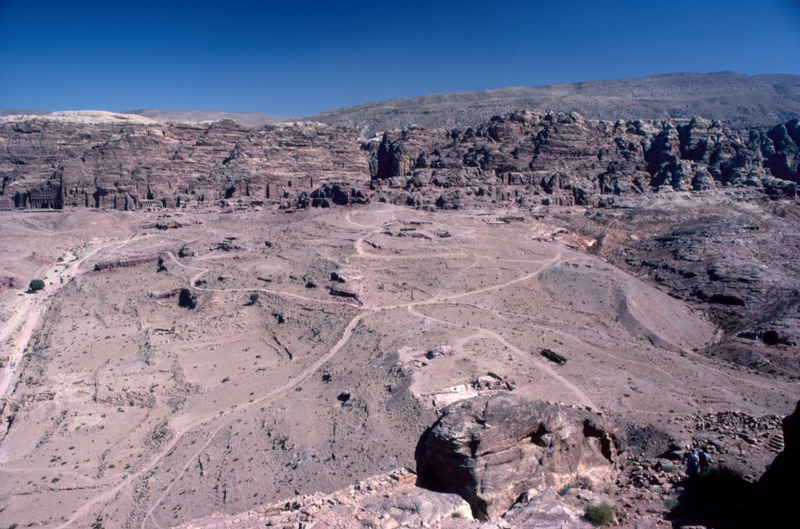 Jordan. Petra, view of Royal Tombs, colonnaded street