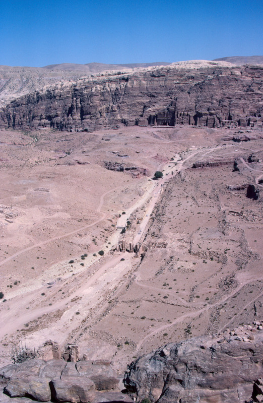 Jordan. Petra, view of Royal Tombs, colonnaded street