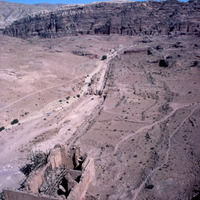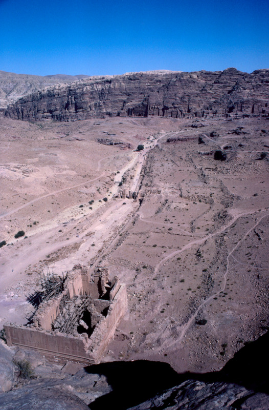 Jordan. Petra, view of Royal Tombs, colonnaded street and Qasr al-Bint