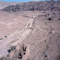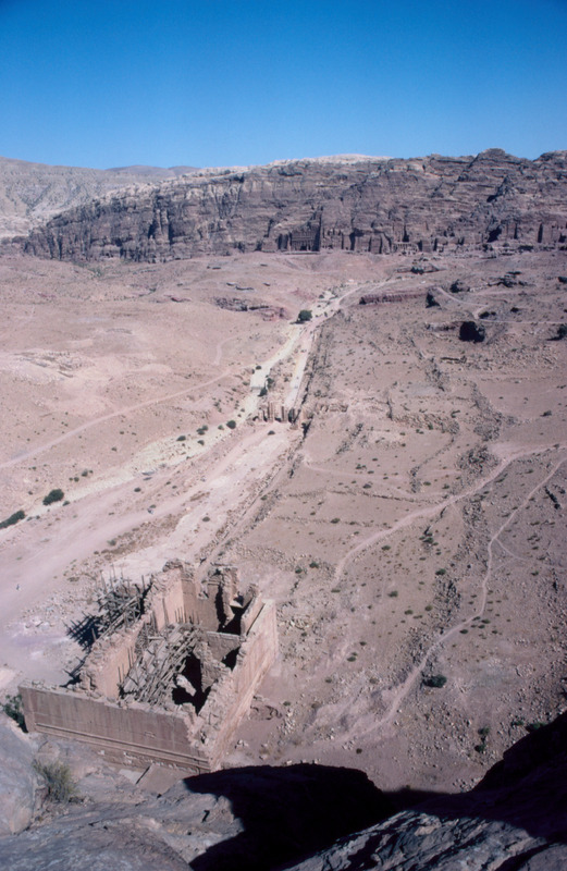 Jordan. Petra, view of Royal Tombs, colonnaded street and Qasr al-Bint