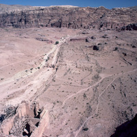 Jordan. Petra, view of Royal Tombs, colonnaded street and Qasr al-Bint