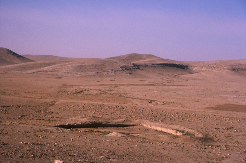 Jordan. Qasr al-Hallabat, view of eighth century reservoir and settlement
