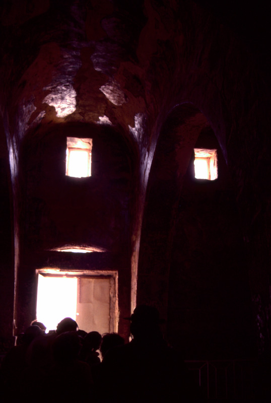 Jordan. Qusayr Amra, general view of the west wall of the right bay of the great hall, framed in the foreground by the arch that marks the entrance to this bay