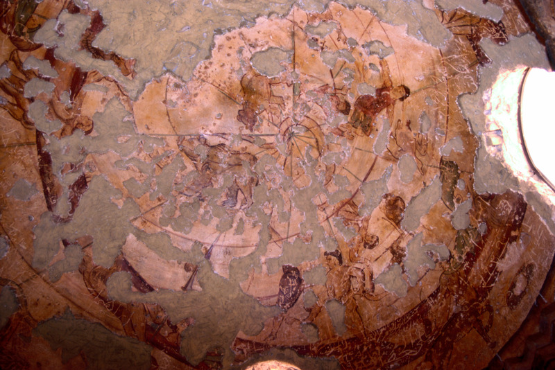 Jordan. Qusayr Amra, dome of the second "caldarium" with a representation of the heavens and the Zodiac