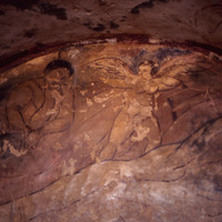 Jordan. Qusayr Amra, scene situated above the entrance to the "tepidarium" from the great hall
